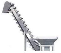 其側(cè)壁延伸到底板外,成為擋邊,斗式提升卸料時(shí),物料可沿一個(gè)斗的擋邊和底板所形成的槽卸止,適用于粘稠性大和沉重的塊狀物料運(yùn)送。